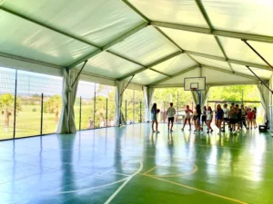 Volvemos a nuestro alojamiento favorito en anteriores ediciones. Ambiente natural para descansar después de una buena jornada de baloncesto. Actividades, piscina, gymkana, competición nocturna,…